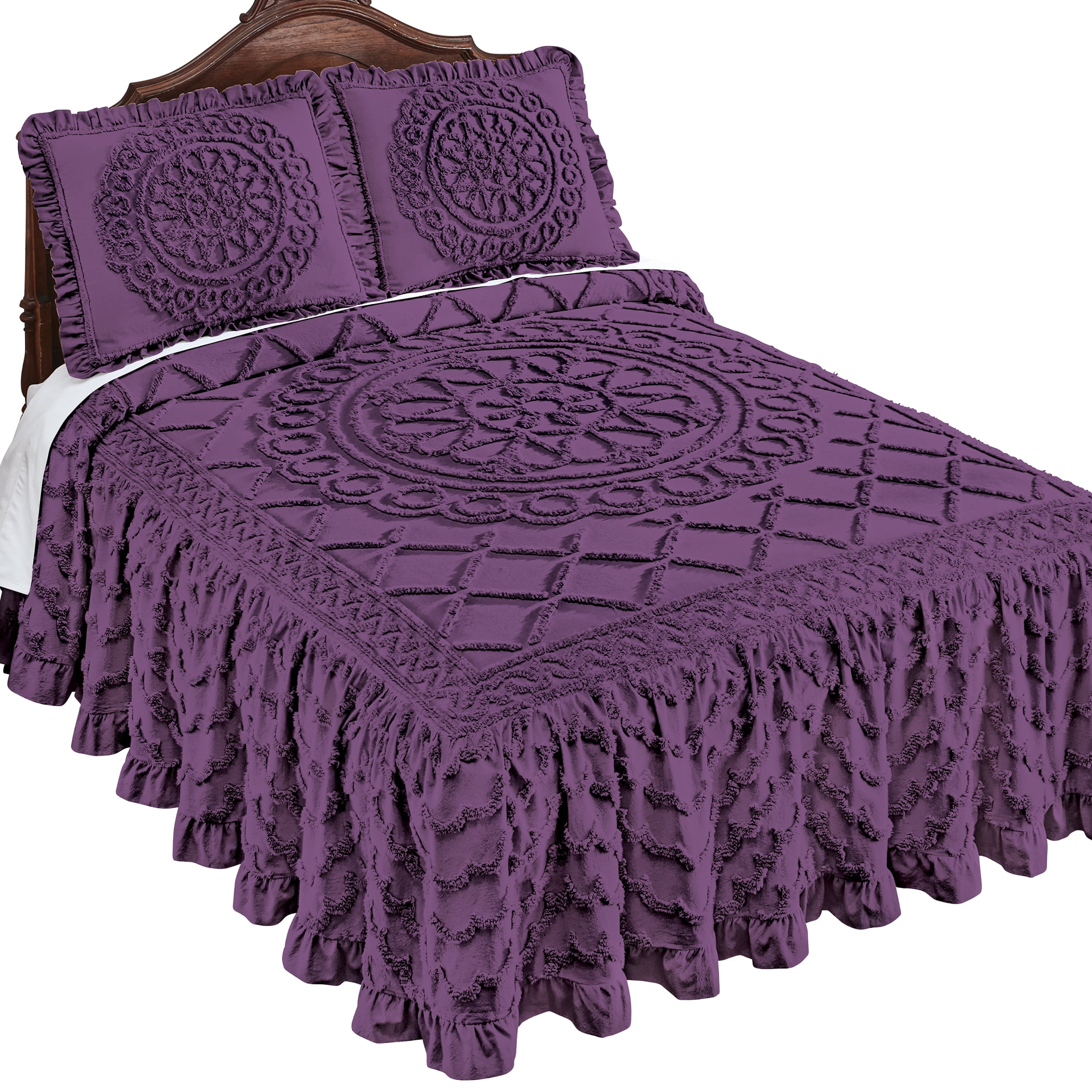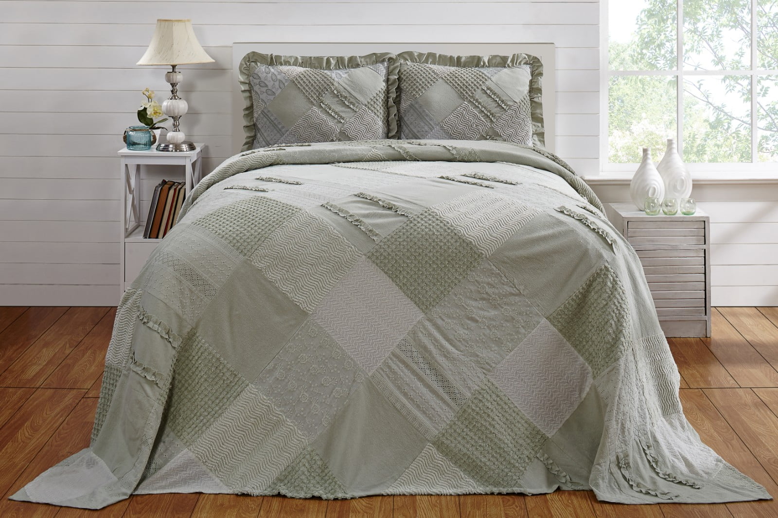 Quilt and sham sold separately. Inup king portugal coverlet matelasse ruffled waffle gray bedspread crochet lace. Add to favorites light mustard matelasse summer throw blanket, shabby farmhouse decor, photography prop baby blanket, cottage chic decor. Its patchwork design is a collection of chenille pieces with solids, florals, and basket weave designs. The bedspread has a crinkled, ruffled design for a tastefully textured look, and the shams are surrounded by ruffled edges for matching fun.