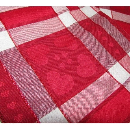 Valentine's day red & white with heart jacquard 52x70 oblong tablecloth nwt.